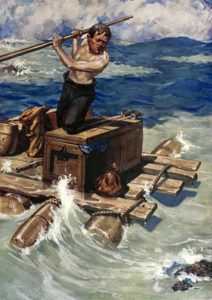 Publié en 1719 et écrit par Daniel Defoe, Robinson Crusoé est considéré aujourd’hui comme l’un des premiers romans d’aventures. Il est en tout cas à l’origine d’un genre extrêmement populaire que l’on retrouve encore aujourd’hui en littérature mais aussi au cinéma et dans les jeux vidéo : la robinsonnade. Le principe est simple : un héros se retrouve, suite à un accident, dans un espace isolé et hostile, comme une île déserte, et doit organiser sa propre survie. Les robinsonnades sont à la fois des récits d’exploration et des récits de survie. Contrairement aux romans d’aventures qui mettent souvent en scène des héros extraordinaires, des aventuriers qui vont à l’avant des dangers, la robinsonnade met en scène des héros ordinaires confrontés à des situations extraordinaires. De nombreux auteurs ne s’y tromperont pas et imagineront des enfants dans le rôle de Robinson.